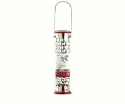 Entice songbirds to dine in style. Distinctive bird feeder features sturdy 4-inch acrylic tube with six feeding ports, allows several birds to feed at once. Graceful arches support the roof topped with finial.